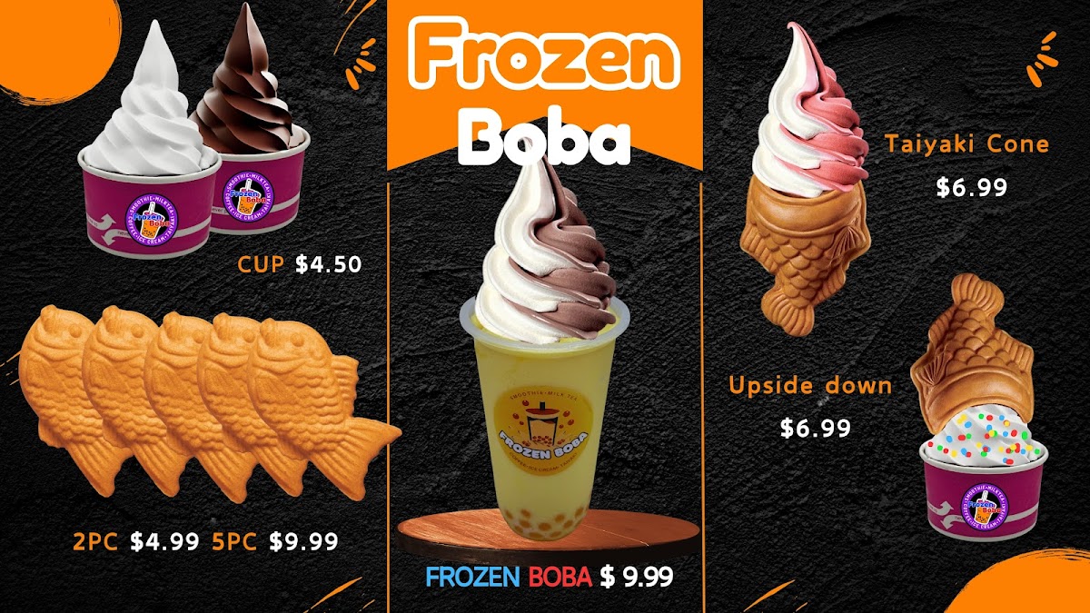 Frozen Boba also offers taiyaki—fish-shaped waffles filled with creamy centers—that add a distinctive pairing option alongside drinks, giving a small but memorable nod to street snack culture. This combination of fun textures and familiar, approachable flavors drives its appeal to younger crowds and families looking for a casual indulgence.